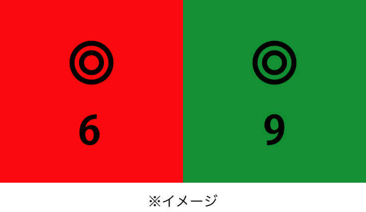 二重丸と数字は赤側、緑側、どちらがはっきり見えますか?