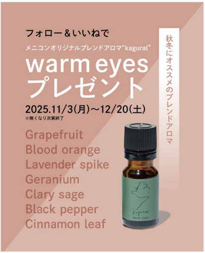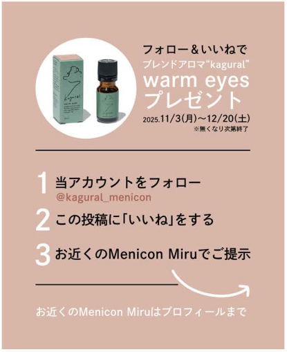Menicon Miru 青森新町店kagural公式インスタグラムフォロー&いいねで「warm eyes 5mL」プレゼント!