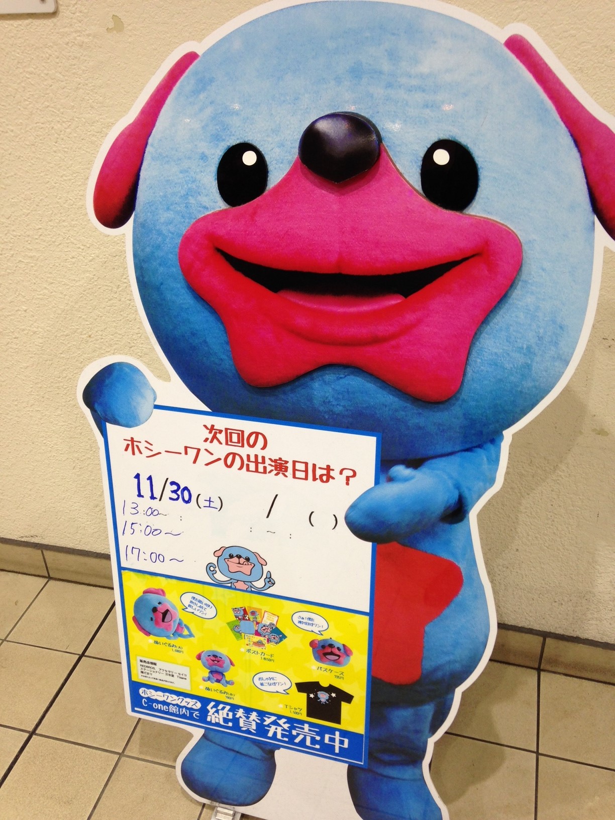 Menicon Miru 千葉 C・one店今月のホシーワン☆ 2013.11.07 店舗情報 最新情報 皆さま、こんにちはメニコン千葉です 11月のホシーワン情報です 11月30日(土) 13:00~ 15:00~ 17:00~ に登場!!コンタクトレンズを交換・受取り後、ホシーワンに会えますよ 千葉でコンタクトをお探しなら/千葉駅すぐのC-one内メニコン千葉 http://www.menicon-shop.jp/chiba/ Tweet ブログ一覧へ戻る Menicon Miru 千葉 C・one店 店舗詳細へ戻る
