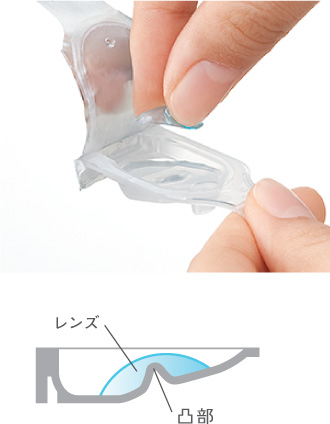 レンズの裏表の確認が不要で、レンズ内面にさわらずに取り出せるパッケージになっていて、