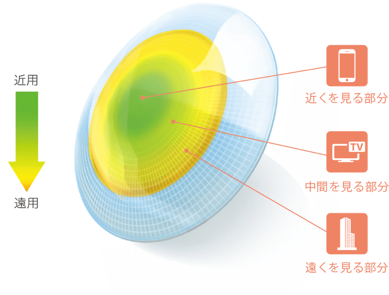 近くをみた時に効率的に焦点が合いやすく、暗い所でも快適に安定した見え方を提供してくれます。