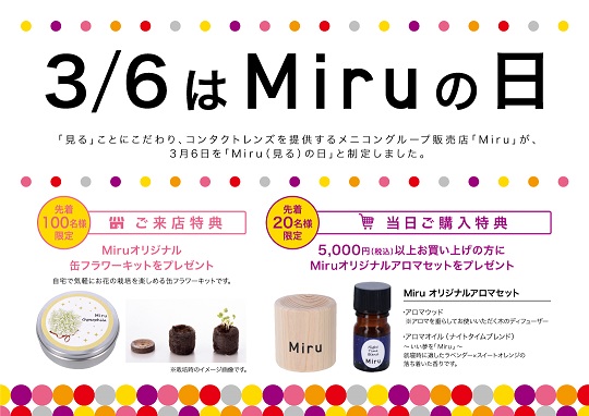 Menicon Miru ミナモア広島店今日はMiruの日♥ご来店お待ちしております♥