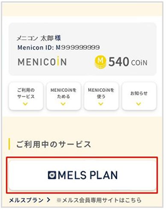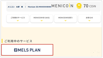 ①ご利用中のサービス内の[MELS PLAN]を選択![]()