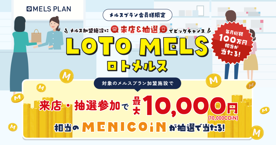 今回は12月3日より始まりました、メルスプラン会員様が加盟施設へのご来店時に楽しみながら参加いただける新しいコンテンツ「LOTO MELS」をご案内させていただきます。![]()