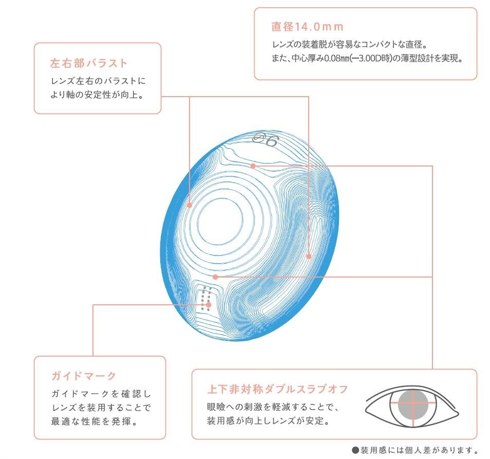 また、長い時間装用してもコンタクトレンズが回転しにくいため、