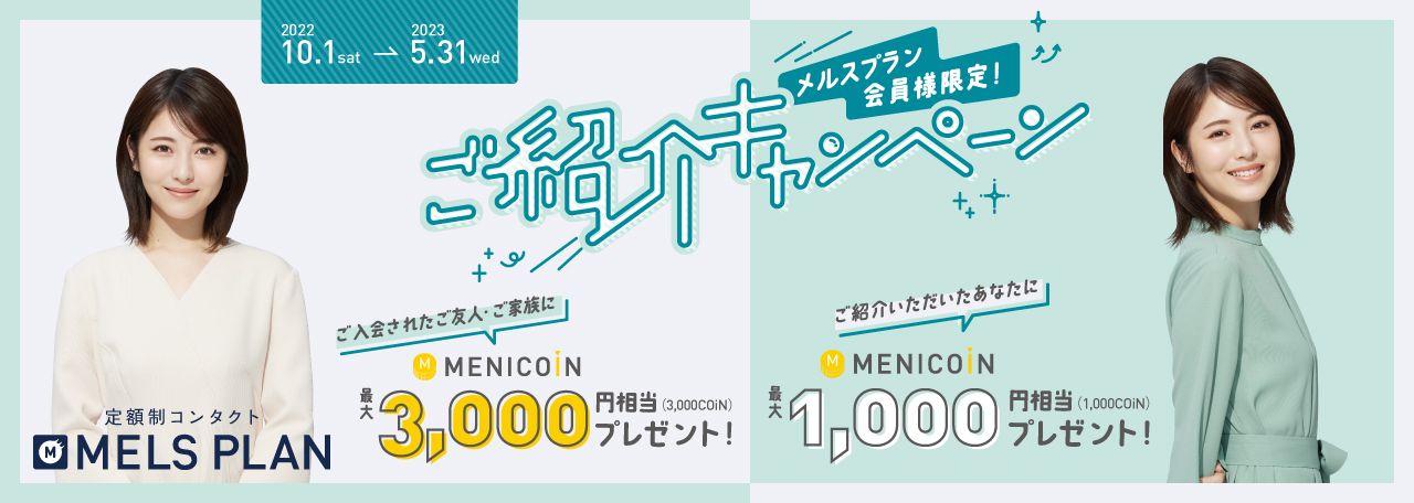 ご友人、ご家族から紹介されてご入会されたお客様にMENICOiN 3,000COiN、