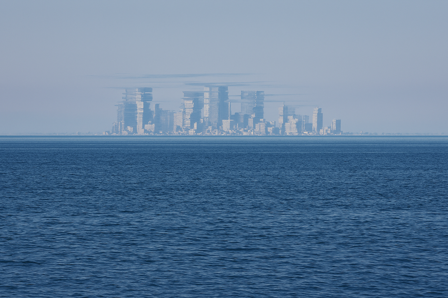 上位蜃気楼は風景が伸びて見えたり反転して見えたりする虚像が、