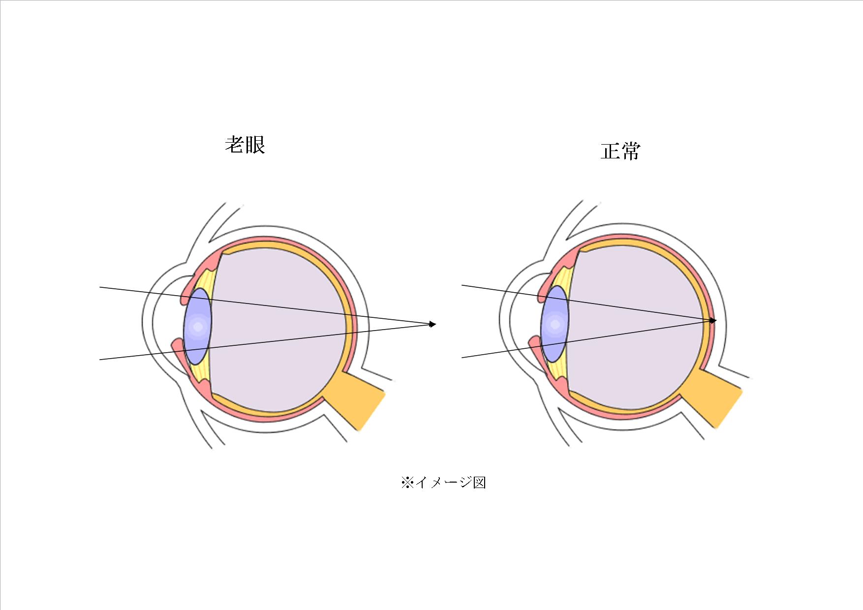 しかし老眼は下図のように、網膜上にピントを合わせることが難しく、近くの物がぼやけて見えてしまいます(@_@)![]()