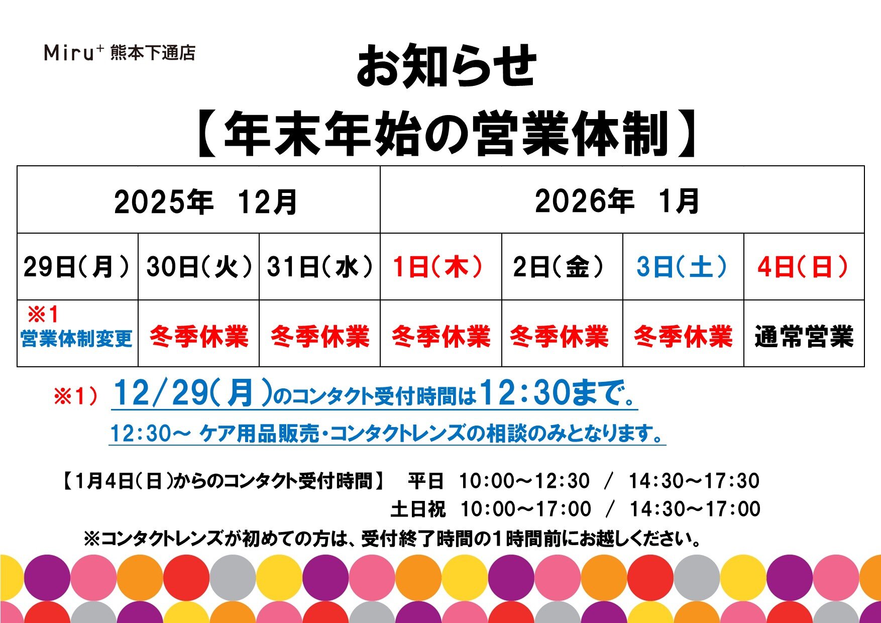 Miru+(ミルプラス)熊本下通店🔴【重要】年末年始の営業体制🔴