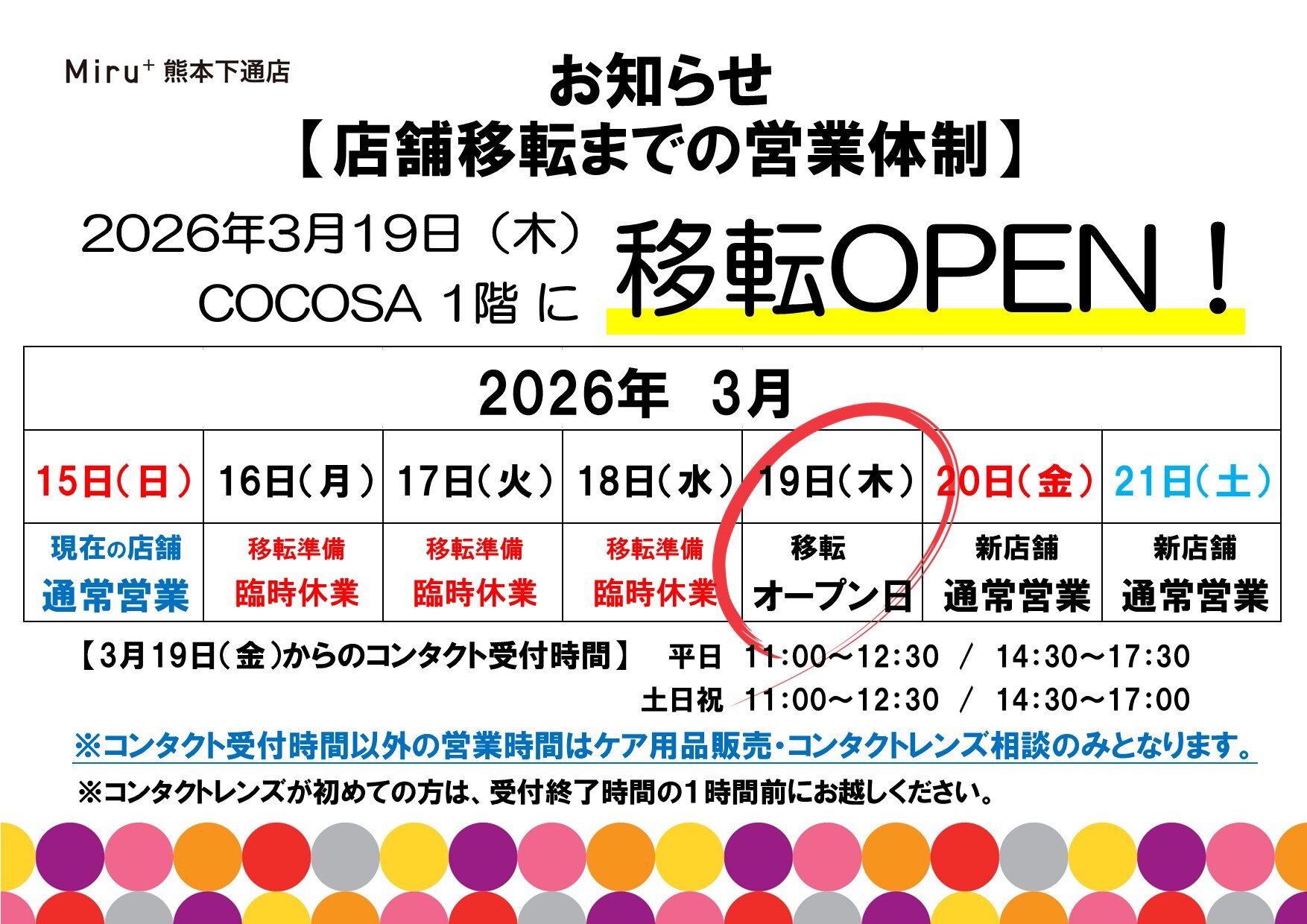 Miru+(ミルプラス)熊本下通店🔴重要🔴COCOSA1階へ店舗移転!3月19日(木)オープン!