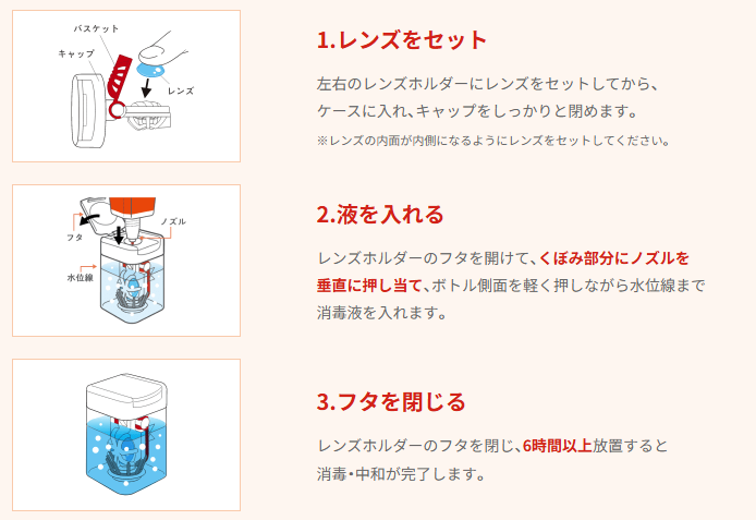 "カンタン"ステップでコンタクトレンズのケアができるので、