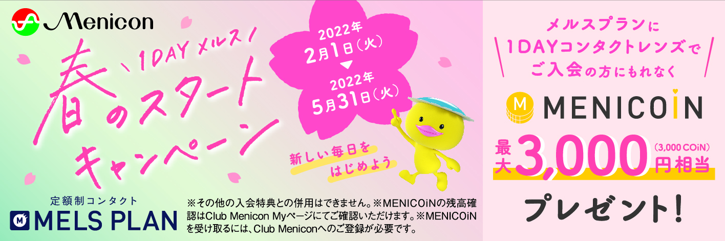 只今、1DAYコンタクトで メルスプラン にご入会いただくと、