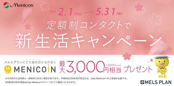 MENICOiN3,000COiN(最大3,000円分相当)プレゼント!!