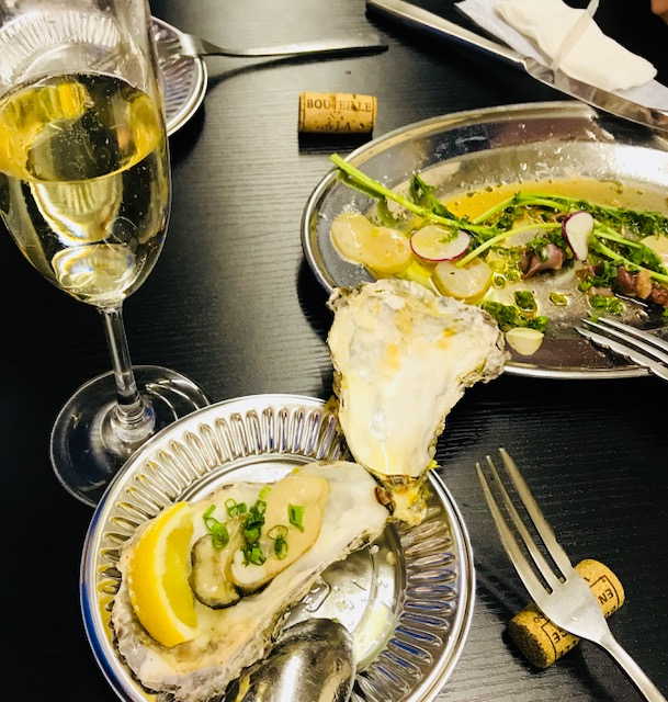 市場の通りをのぞいてみると、天ぷらに寿司、串揚げや鮮魚、洋風バル