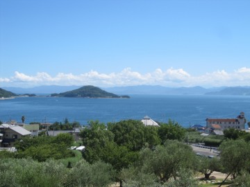 オリーブの木々の緑と瀬戸内の青い海・白い雲の美しい風景に心癒されます![]()