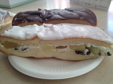 パンの中には、フルーツ入りのホイップクリームとカスタードクリーム