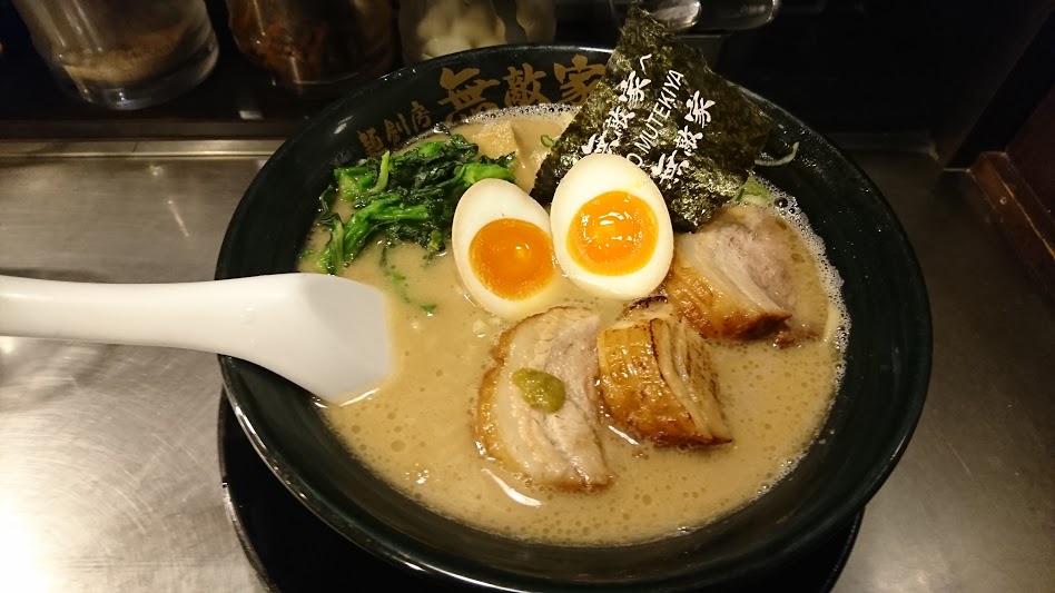 ↑満足度ナンバーワンの無敵家らーめんニクタマです。厚切りのチャーシューがとてもおいしいです![]()