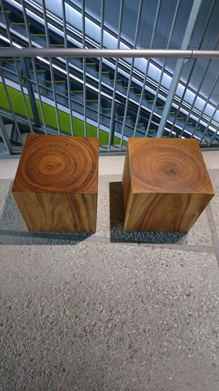 途中には観葉植物やベンチがあり、木のぬくもりが感じられて