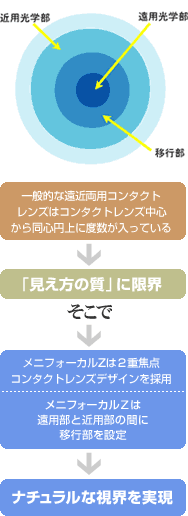 「2重焦点コンタクトレンズデザイン」と「移行部」でナチュラルな視界を実現