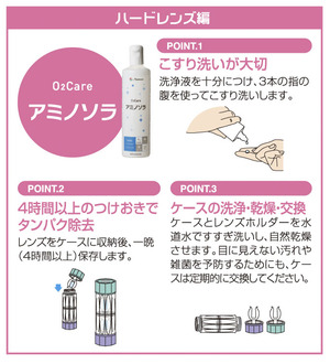 O2ケア アミノソラはハードレンズ専用の洗浄液です。