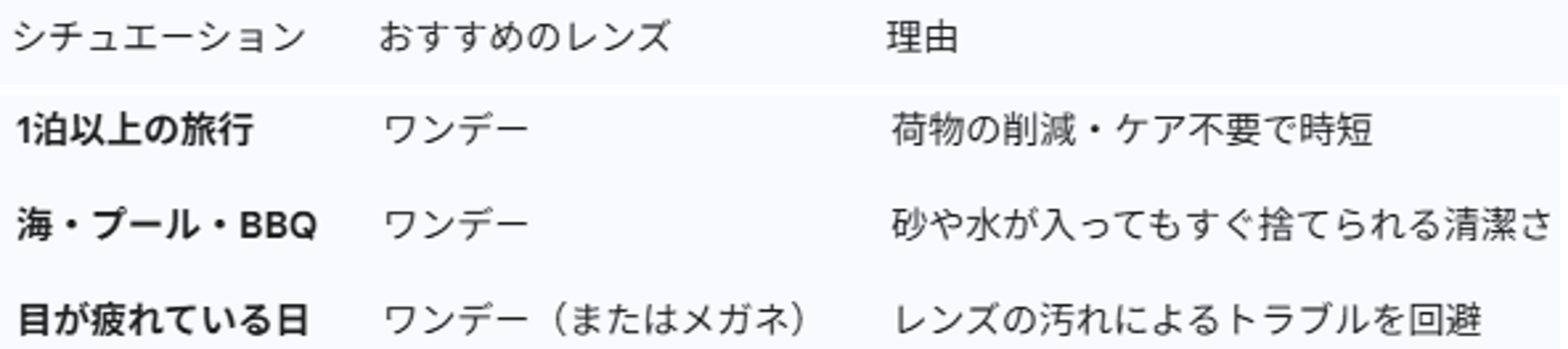 そこで、更にシーン別にワンデーの使用タイプを見てみましょう💗