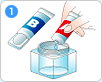 ③バイアルのフタを外し、ホルダーごと水道水で十分すすいでください。