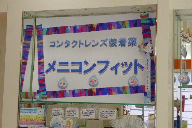 入口の透明ガラスの外側からメニコンフィットのPOPが見えましたら