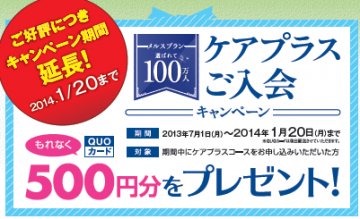 今回は、『ケアプラスご入会キャンペーン』期間延長のお知らせです。