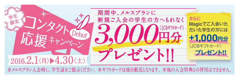 学生の皆さまに、メルスプランにご入会いただくと、素敵な特典が...![]()