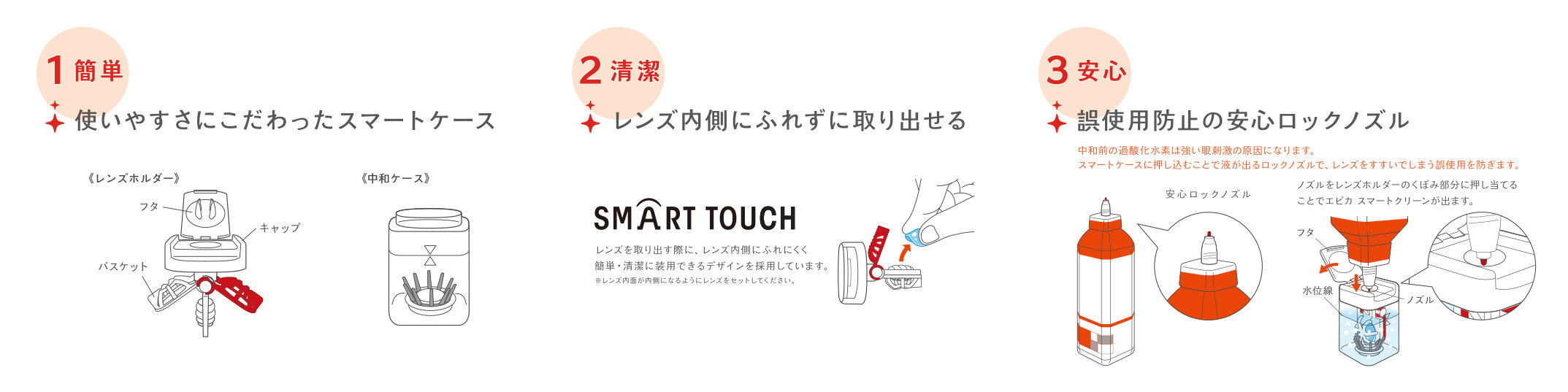 ●レンズ内側にふれずに取り出せる「SMART TOUCH」